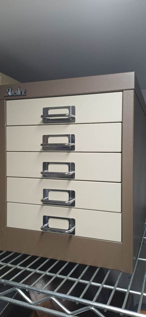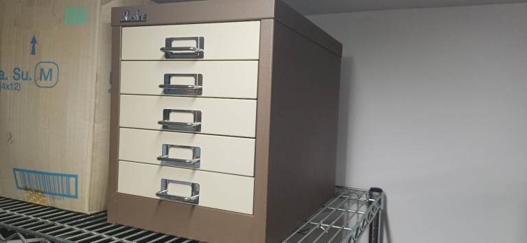 Silverline metal filing cabinet. 5 drawer. Brown and cream. Sizes as in picture. Like new.