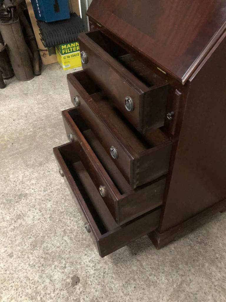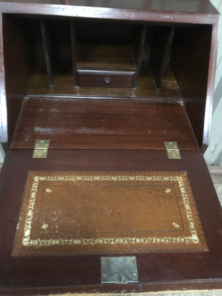 Small Mahogany Writing Bureau, good condition, one key, 39.5 inches 100cm High, 20 inches 41cm Wide, 16.5 inches 42cm Deep. £60 Cash on Collection from Meikleour