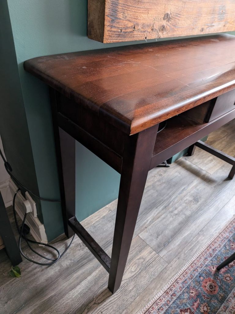 Solid Dark Wood Writing Desk / Console Table with Drawer