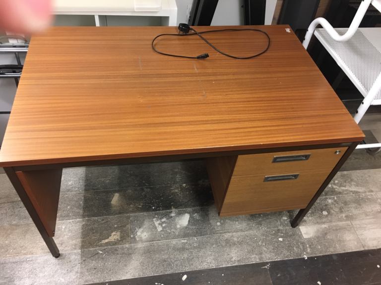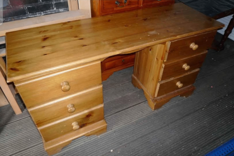 The desk is in good structural condition but has been well-loved. As seen in the photos, there are some visible surface scratches and signs of wear on the top. It still looks great as-is for a rustic feel, or it would make an excellent, easy sanding and upcycling project!