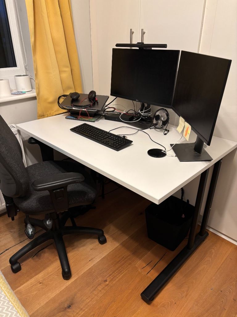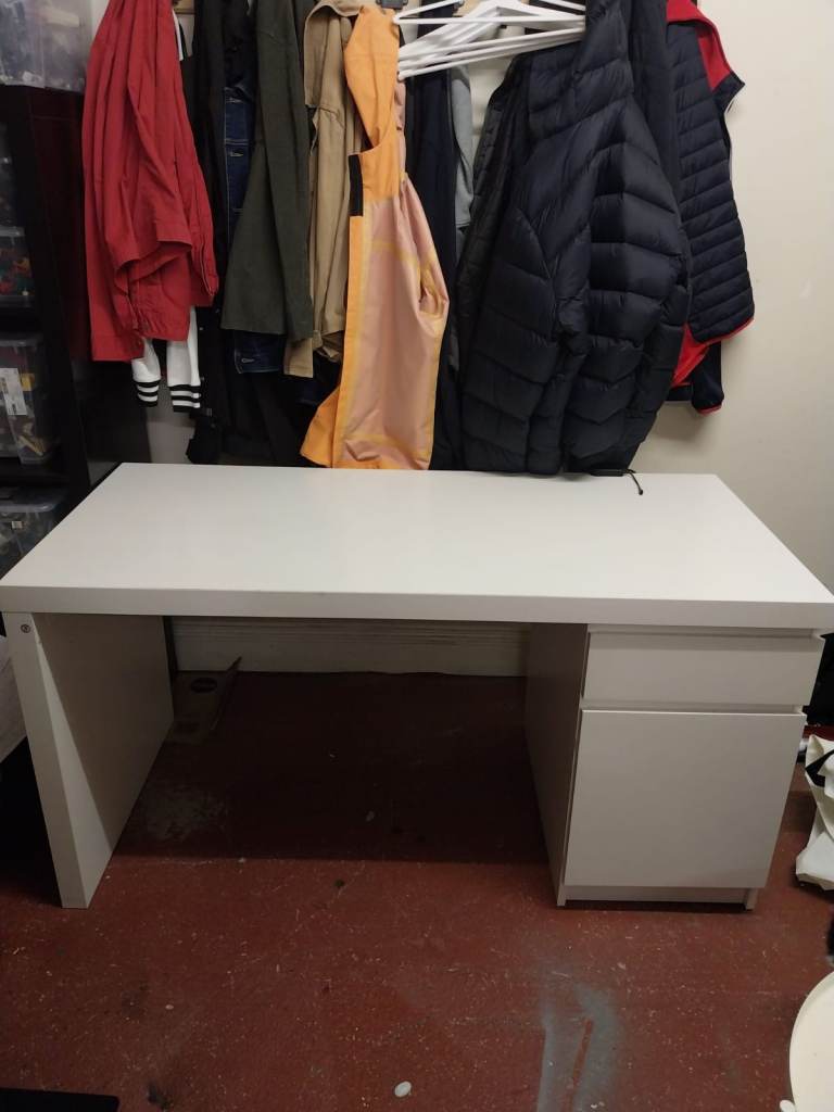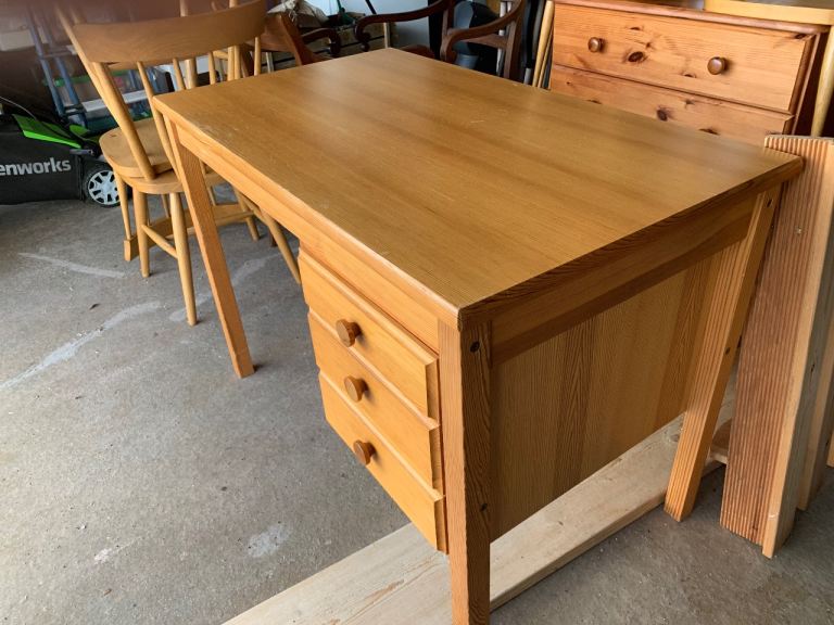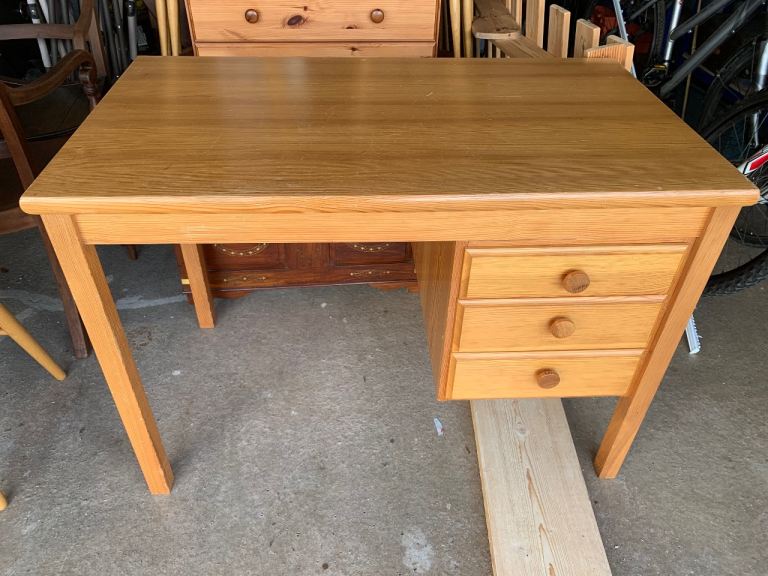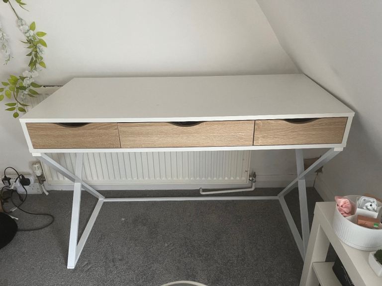 Solid wood desk / dressing table with 3 drawers, fair condition but has marks from normal wear. 105cm x 60cm x 74cm tall. Buyer to collect from Stafford.