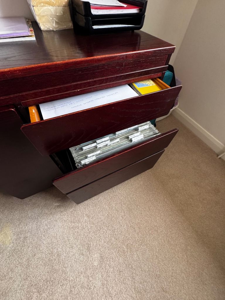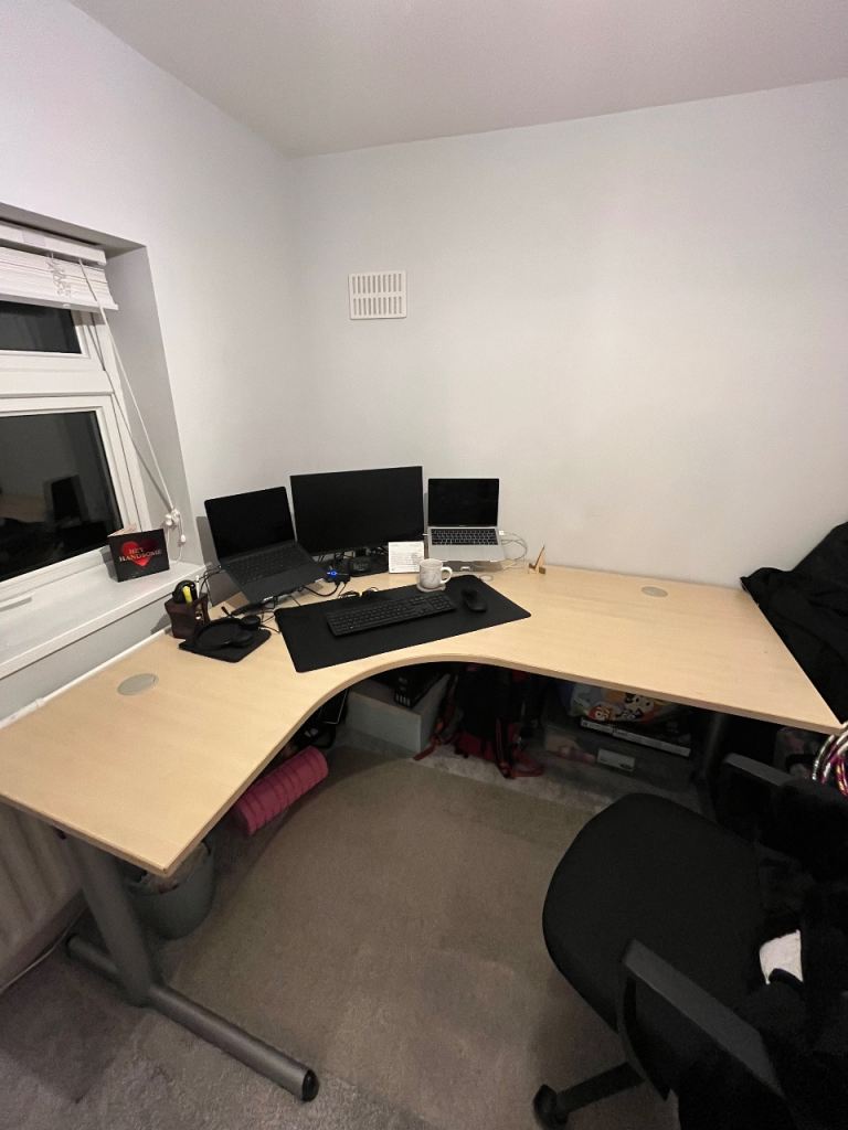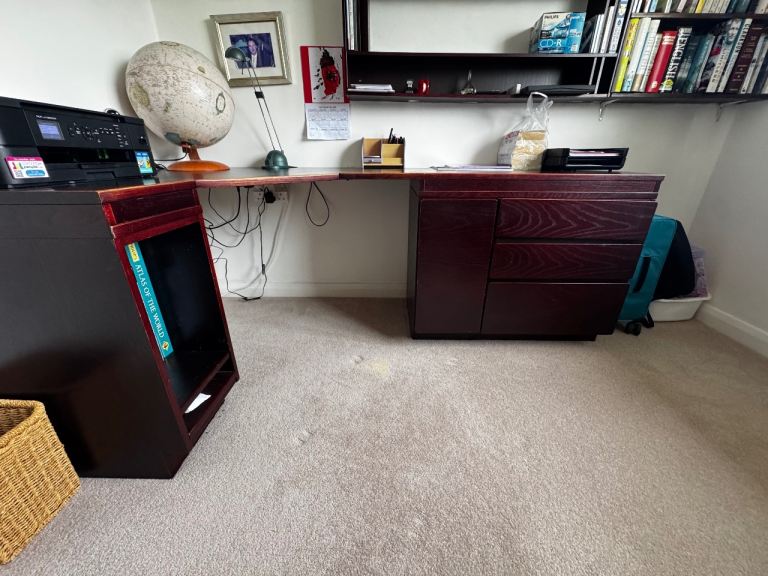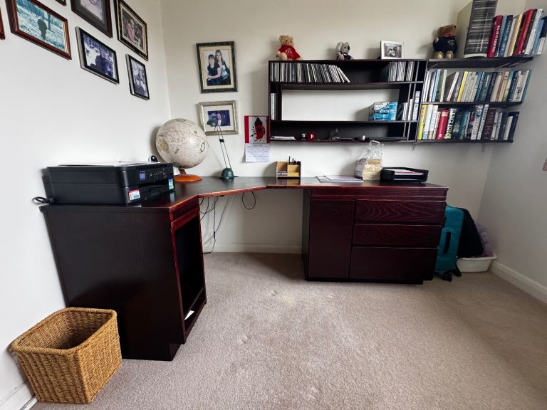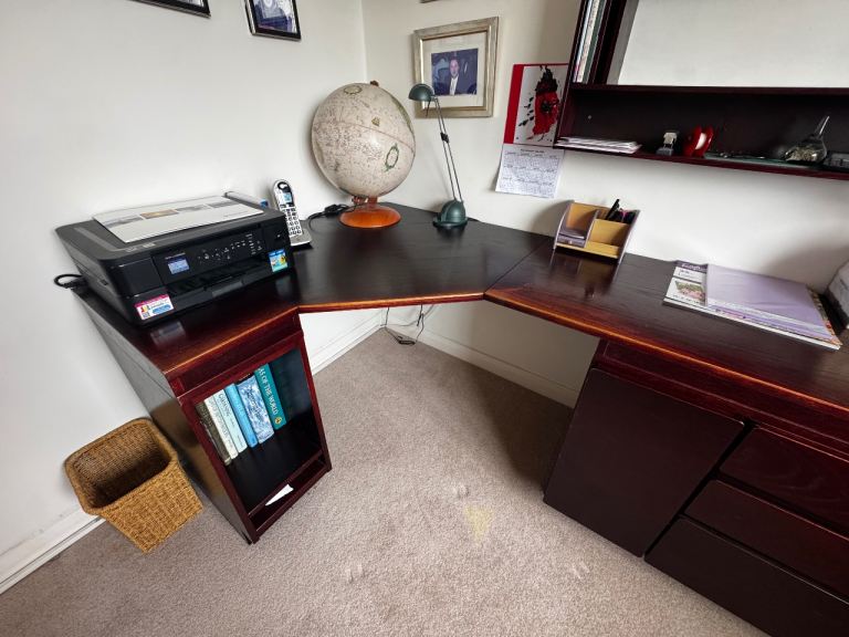 Solid wooden L-shaped desk, perfect for a home office, study or work place.