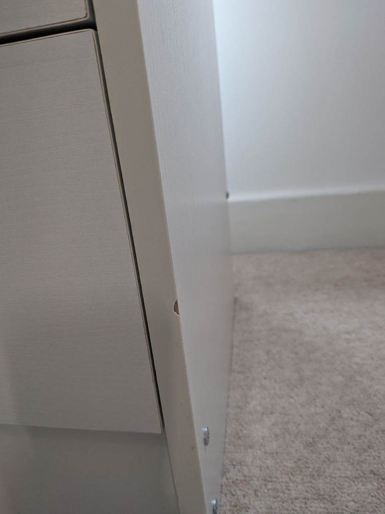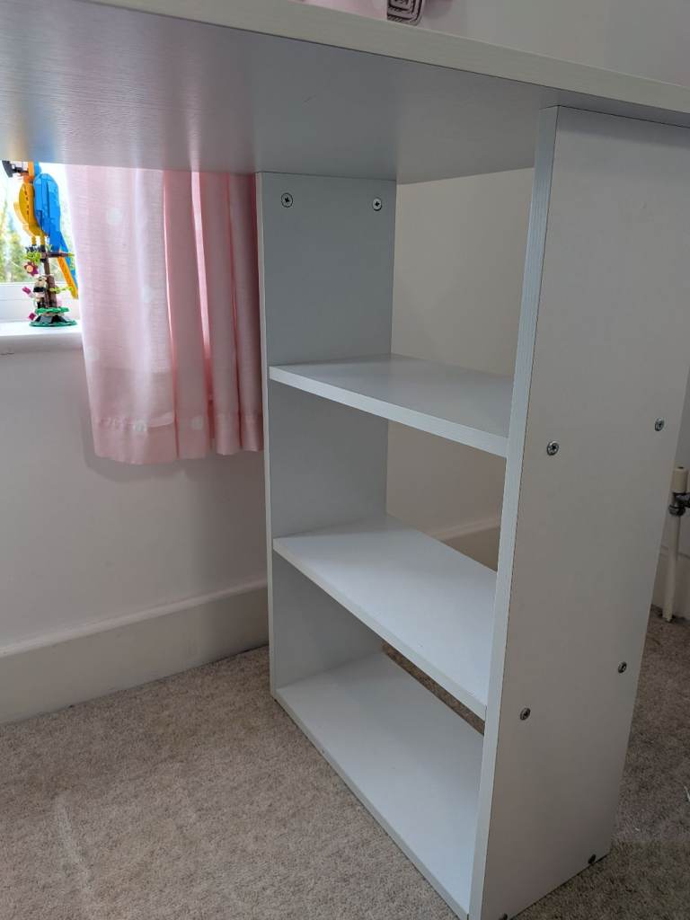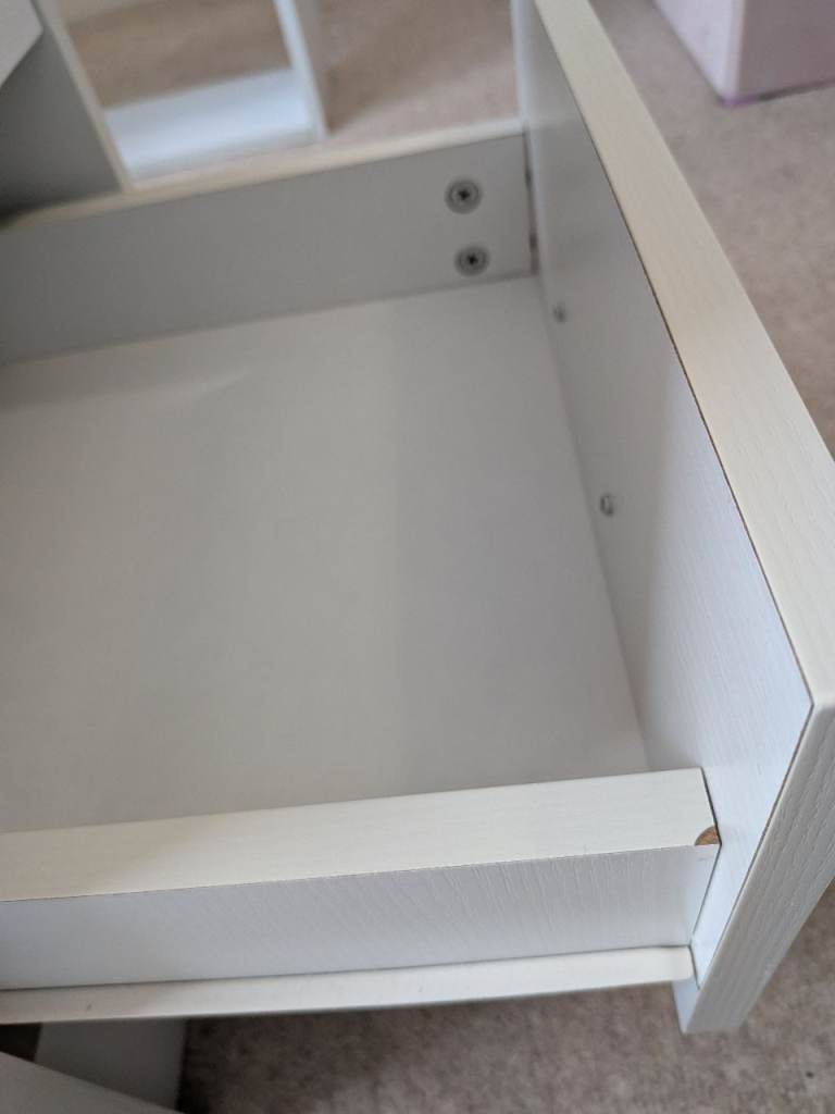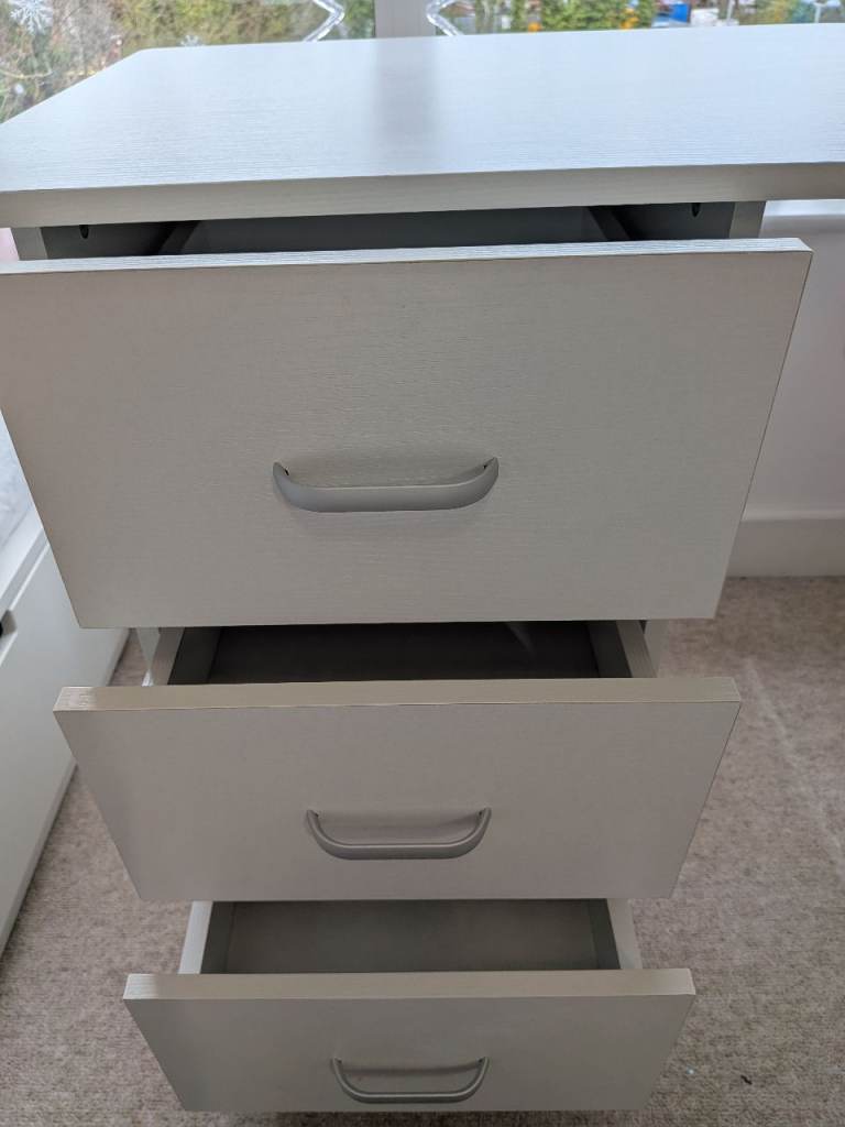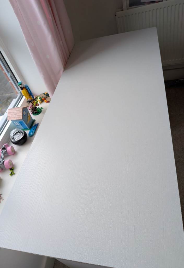 White desk, very good condition, however there are two little faults, chipped on the edge. Please refer to last two photos.
