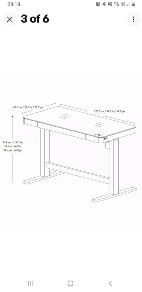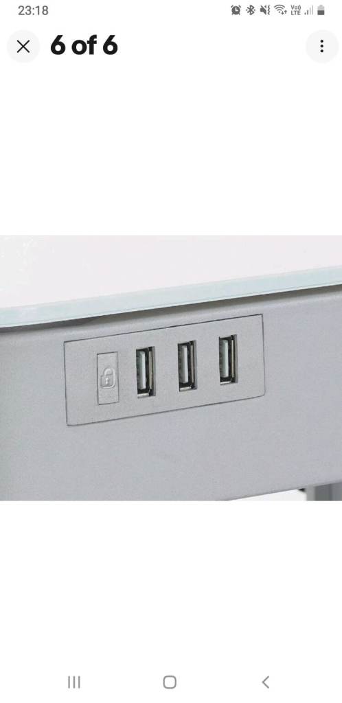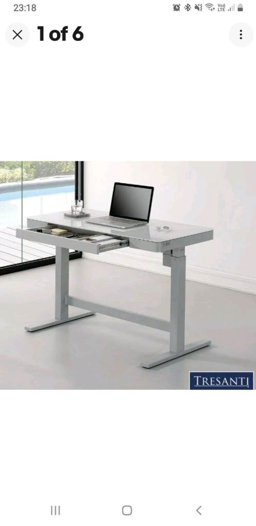 Tresanti adjustable table. 4 pre set height settings or Adjust to your personal desired height. 3 USB ports. Tempered glass top. Solid metal support. Viewing/collection DE24