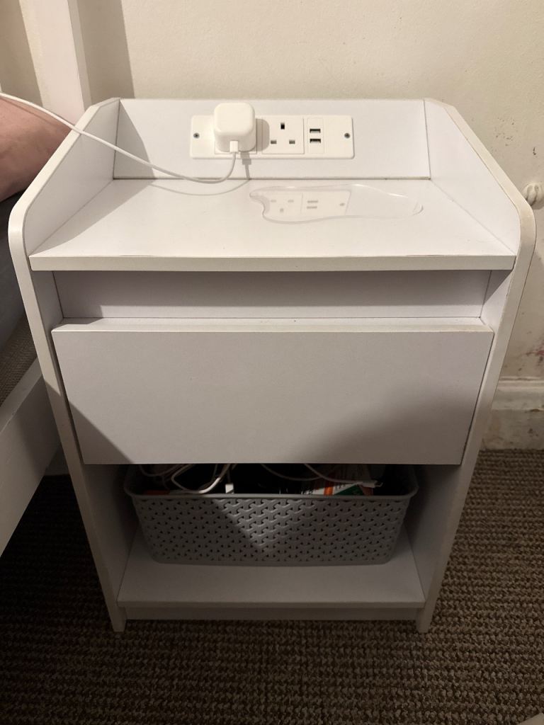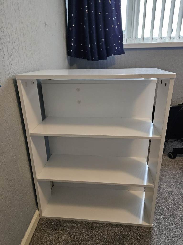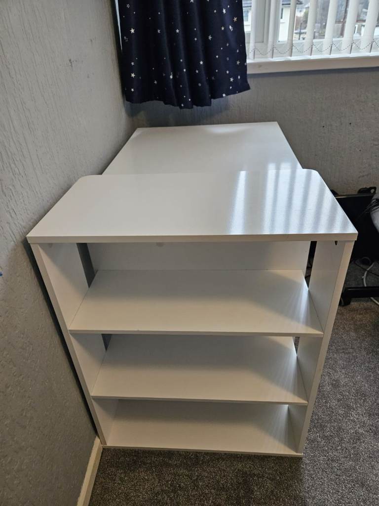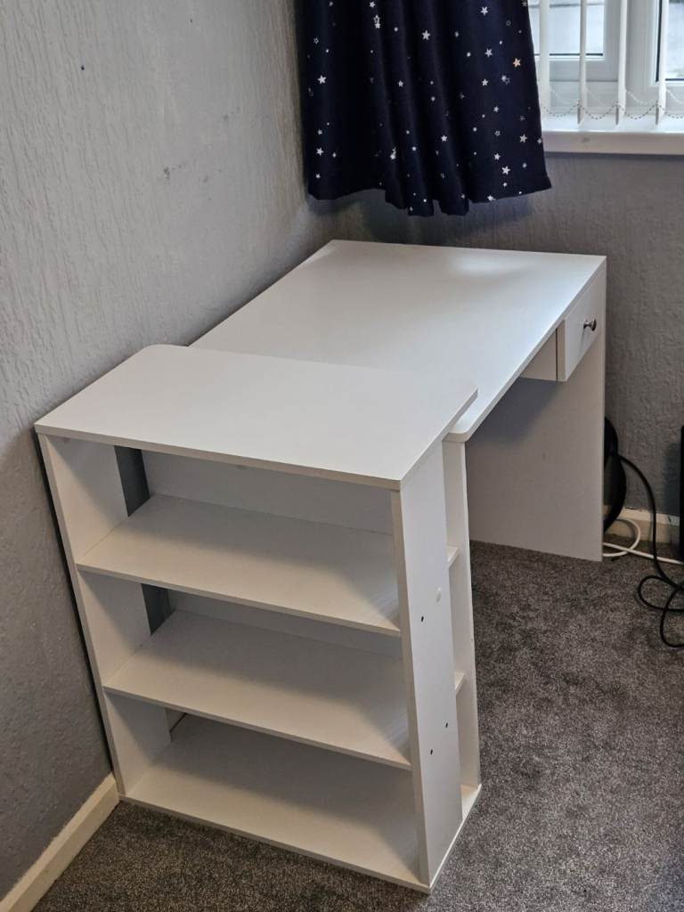 White desk with shelves on the side