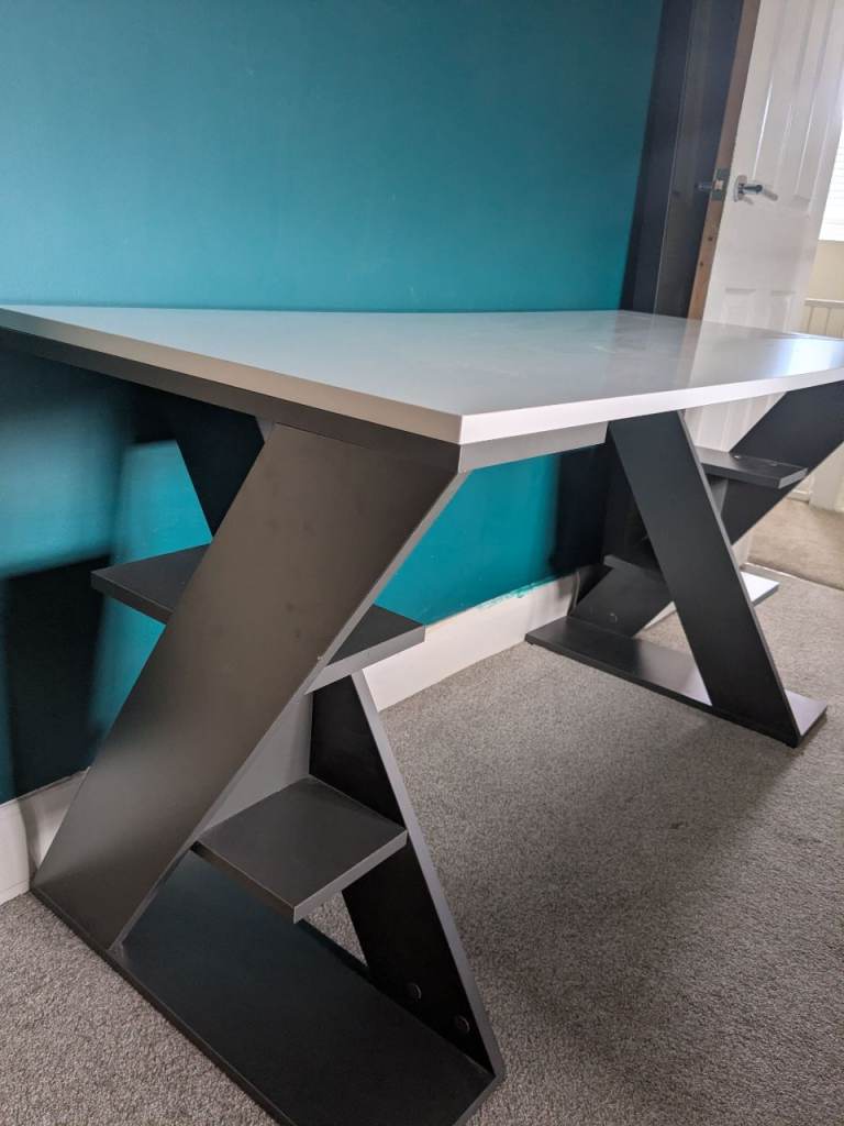 Posting for 5+ yearsWhite and Grey asymmetric desk