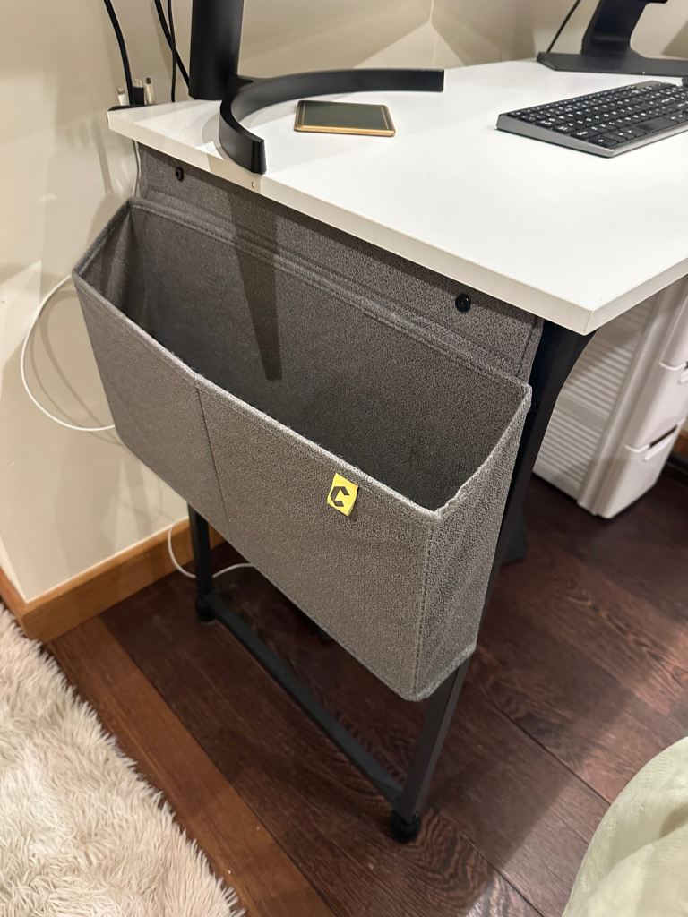 It has a cable organizer attached below + foot stall on the floor, which I’m happy to give you