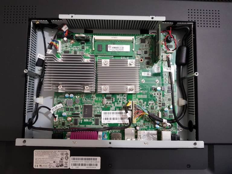 Has 2gb ram and a 2gb SSD running its own OS, Dual Core VIA Eden CPU, built in speakers. Both the ram (DDR3 PC3L) and the SSD (normal SATA port) are upgradeable, not soldered on hardware.