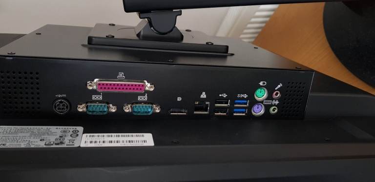 Mounted on a height adjustable stand. Comes with charger, nothing else. Please see I/O on the pictures.