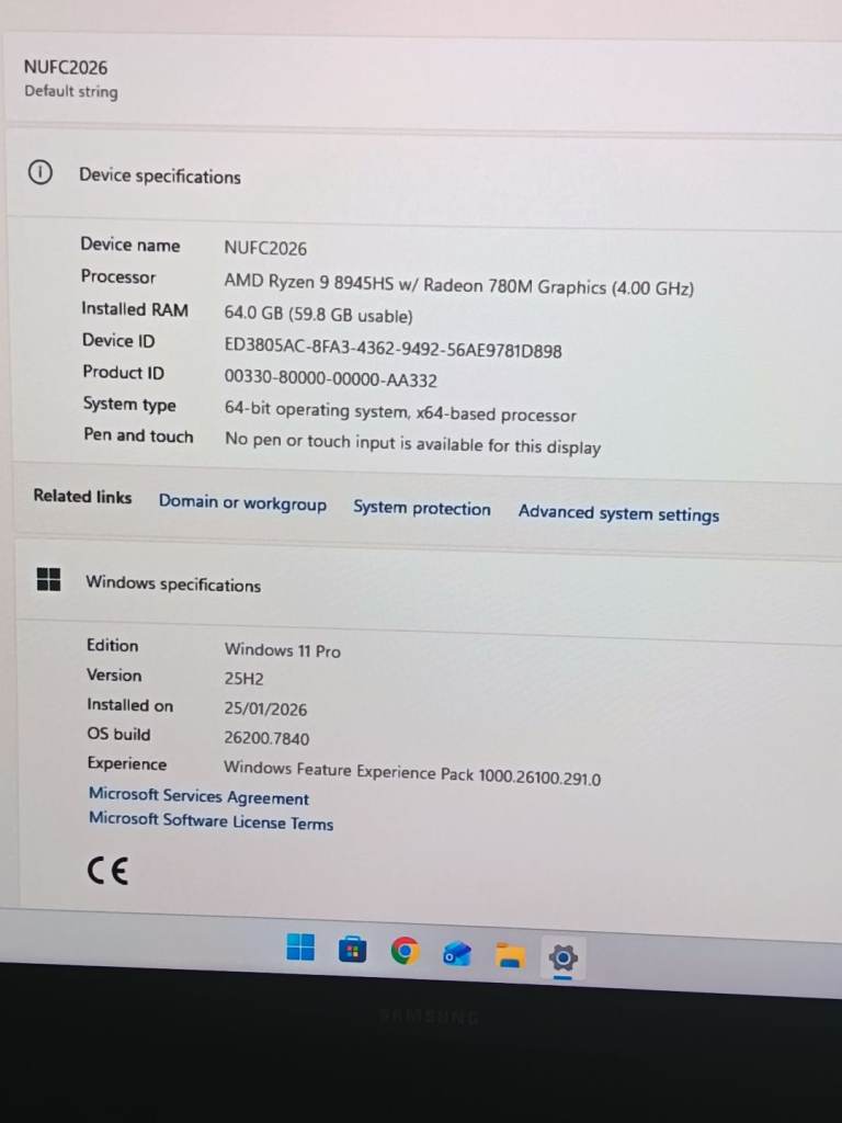 HI SELLING MY MINI PC AMD RYZEN 9 8945HS WITH RADEON GRAPHICS 780M 4.00GHZ ,IT HAS A 512GB NVME M2 SSD STORAGE,64GB DDR5 4800HTZ RAM , LIKE NEW ,SPECS IN THE PICS ,,, HAS ORIGINAL BOX, POWER LEAD ETC , VERY CLEAN AND ITS RGB ON THE SIDE AND POWER BUTTON,YES IT DOES PLAY BLACK OPS 7 AS IVE PUT A VID ON OFF IT WHILE I WAS PLAYING ,,,, I BOUGHT IT BARE BONES THAT MEANS IT HAD NO STORAGE OR RAM AND IT WAS £469.85P AS PRICES HAVE ROSE THROUGH THE ROOF FOR RAM AND STORAGE, THIS IS GOING CHEAP VERY CHEAP ,,, ITS ALSO A AMD RYZENtm AI AS U CAN SEE IN THE PICS ,,,ITS PICK UP ONLY THANKS,,,,