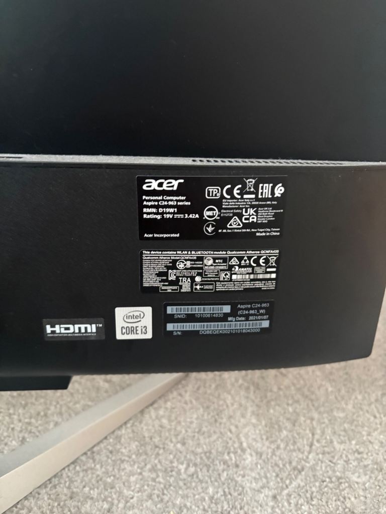 Posting for 13+ yearsACER Aspire C24-963 23.8" All-in-One PC - Intel® Core™ i3, 1 TB HDD, Silver