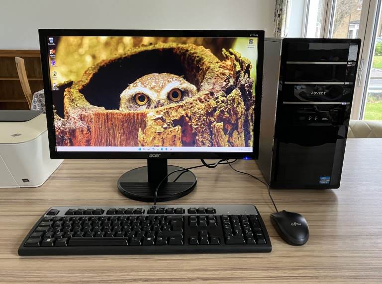 Advent Windows 11 Computer PC with 22 inch LED widescreen monitor, SSD drive, WiFi and free printer