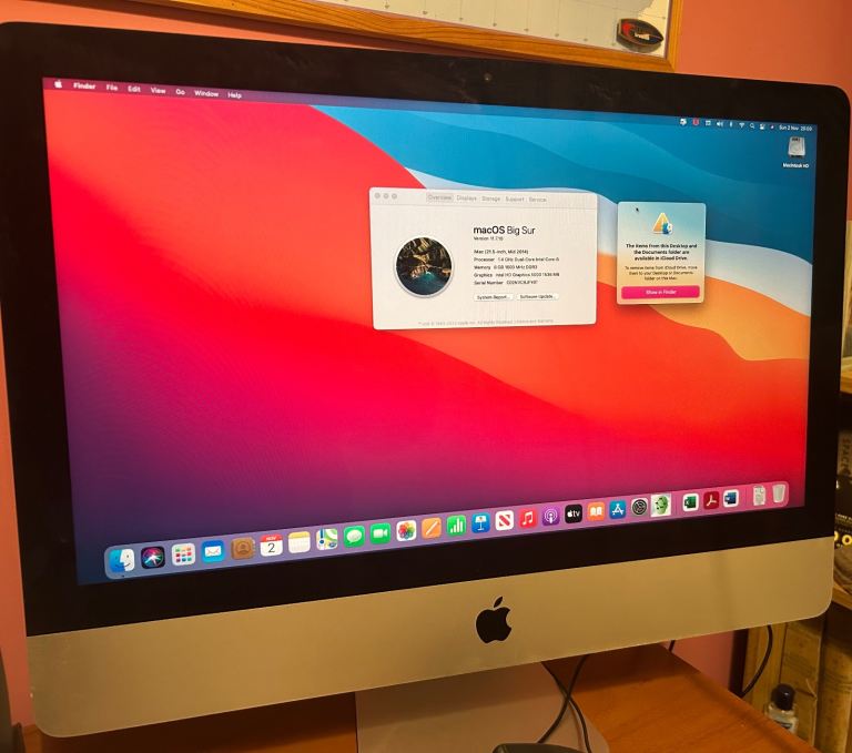 Posting for 3+ yearsApple iMac 21.5" 2014 1.4Ghz Core i5 8GB RAM 500GB hard drive, Big Sur,