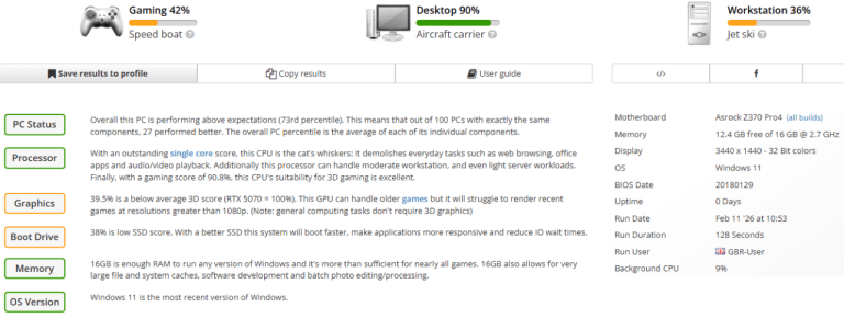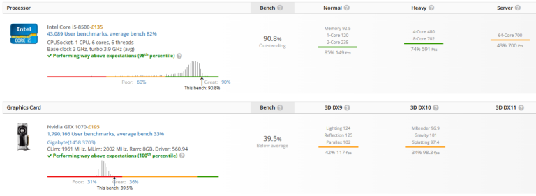 The Gigabyte GTX 1070 8GB graphics card delivers excellent performance in many modern and competitive games and supports up to 5 screens. The Intel i5 8500 six core processor provides stable performance for gaming and productivity tasks.