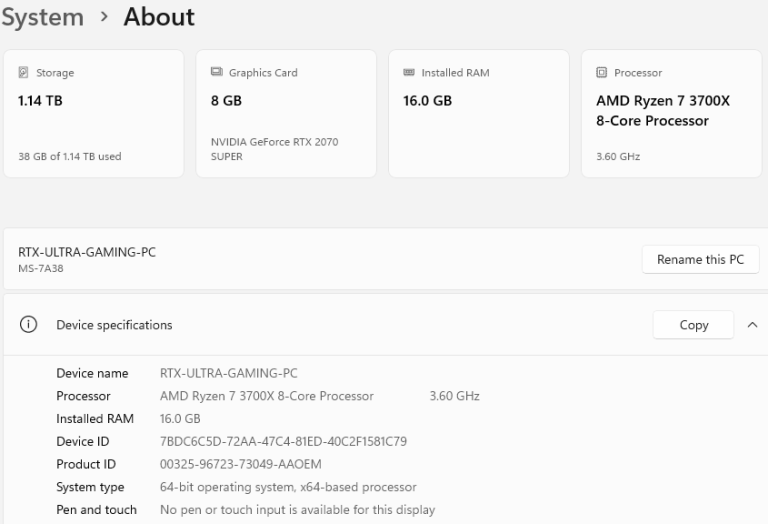 High-Performance Gaming PC – Ryzen 7 3700X 8-Core / 16-Thread | RTX 2070 Super 8GB | 16GB DDR4 | NVMe SSD + HDD | RGB Case | Windows 11