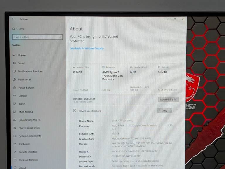 GPU: MSI NVIDIA GeForce GTX 1060 6GB (The full-power 6GB model)