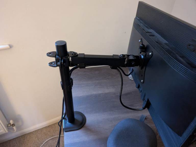 Complete Setup. HP - Slim Desktop PC Bluetooth mouse, keyboard, Acer Monitor and Desk Mounted Stand
