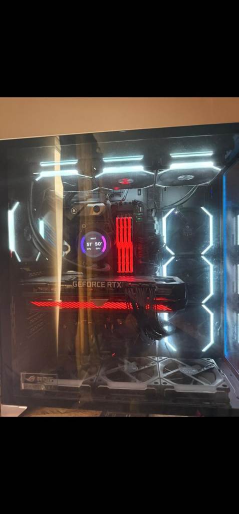 Custom High-End Gaming PC – Ryzen 9 5950X | RTX 3090 ROG Strix OC | 6TB NVMe Storage I built this custom gaming PC in 2021, and it’s been an excellent performer. I recently built a new system, so I no longer have a use for this one. The PC is fully functional, extremely powerful, and capable of handling modern AAA games and demanding workloads with ease. The only minor issue is that the bottom three fans are currently not spinning. This doesn’t affect performance, but to make sure you’re fully covered, I’ll include spare Lian Li fans and Strimer cables with the PC.