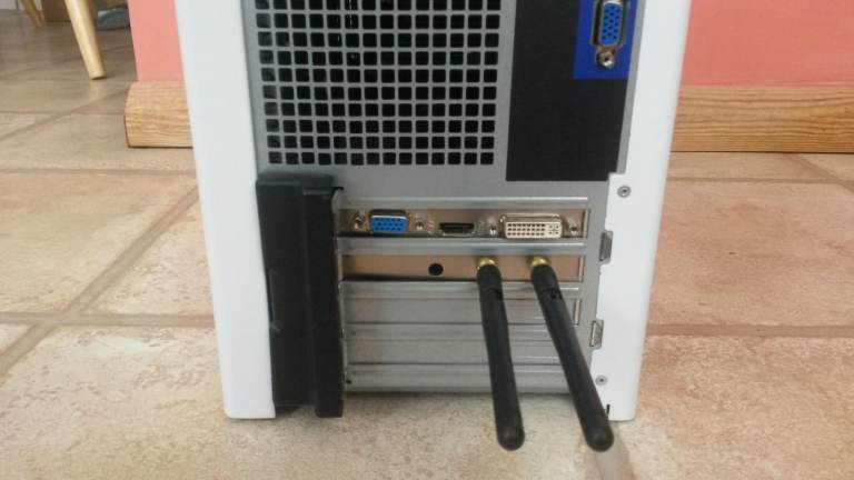 It has a wifi card to give you access to the internet wirelessly. It has a dedicated graphics card with VGA, DVI and HDMI outputs to your monitor.