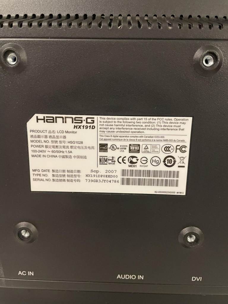 HannsG HX191D HSG1028 LCD Monitor, 1280 x 1024 resolution and 60Hz refresh rate