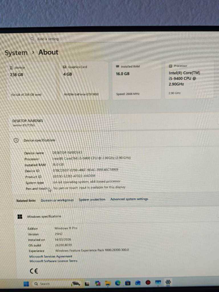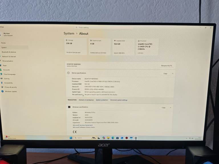Full pc gaming i5 9400, GTX 1650, 16GB RAM, 240GB SSD, Acer screen, wireless mouse and keyboard