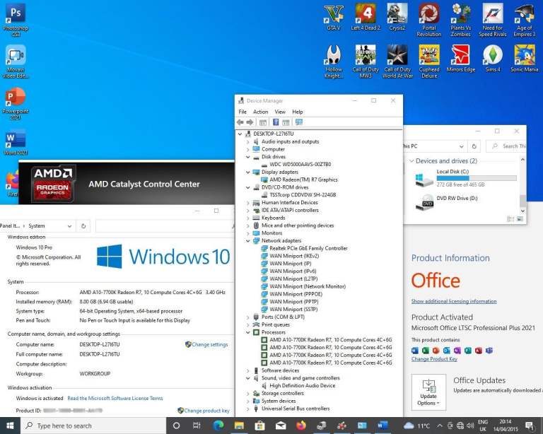 ** Play B4 Buy ** 14 GAMES (League of Legends (Ready), GTA 5, Call of Duty) – AMD A10 7700K = Intel Core i5 2500S and higher than Intel Core i7 870, i7 940, i3 10110Y (10th Gen) - Photos = Actual PC. New Installs - MICROSOFT OFFICE 2021 + Adobe PHOTOSHOP + MovAvi VIDEO EDITOR 2022 - PC also suitable for Business / Admin / Creative projects – incl. Video EDITING / DESIGN - Full specs below...