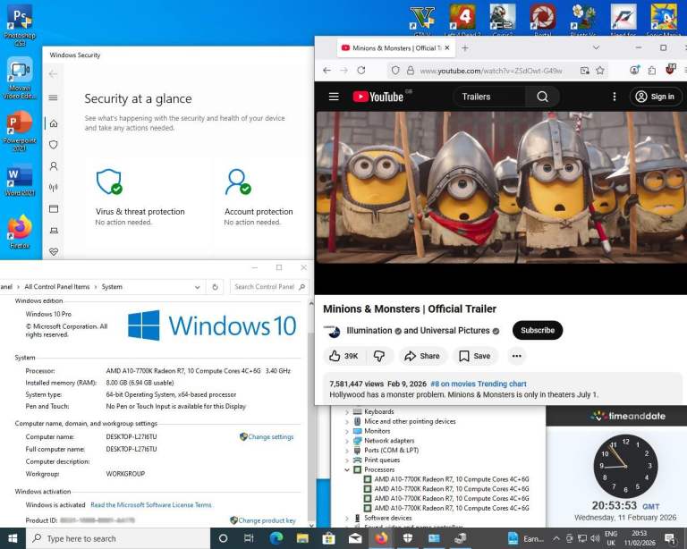 • Fresh Installs -: Windows 10 Professional (64bit, Activated), Direct X and C++ (latest updates). Windows Defender updated (This proves windows is activated). ** NOTE: See windows screen picture 6 - Activation / YouTube video date / Time and Date Website - indicating NEW PC offer.