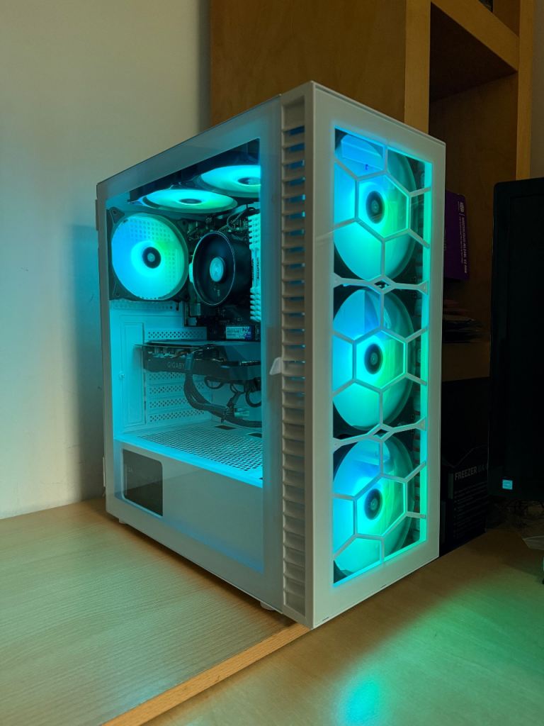 Powerful Gaming PC for various games at 1080p/1440p(2K) on many games such as: Fortnite, Roblox, Valorant, Apex Legends, CSGO, LoL, Minecraft, Rust, PUBG, GTA V, Cyberpunk etc... and can be used for any other uses you throw at it, including school/office work or editing/rendering. The PC is in pristine condition, has been cleaned, and runs quietly even under load. Updated to latest Nvidia Graphics drivers. Has been tested thoroughly on Furmark, CPU-Z and other benchmark software so everything is fully functional.