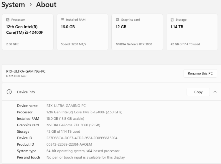 This Acer Nitro gaming PC offers strong performance for 1080p and 1440p gaming. Powered by the efficient Intel i5 12400F and RTX 3060 12GB, it is a great choice for modern games, esports, and everyday use.