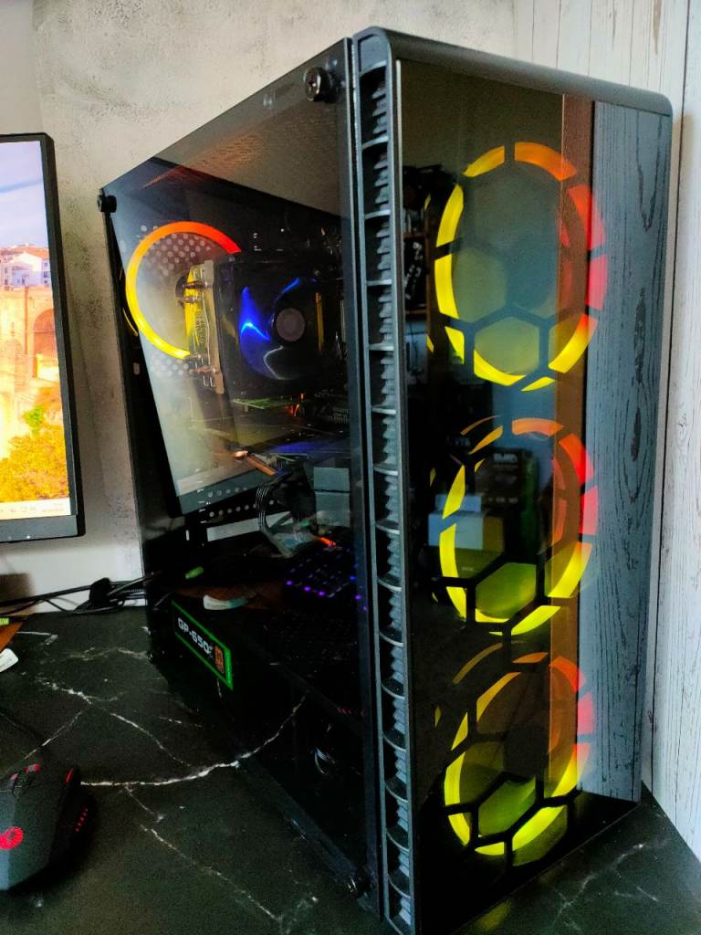 Case - Gaming Case with 4 x RGB cooling fans and a tempered glass side panel. All RGB is connected to a hub and can be altered at the press of a button.