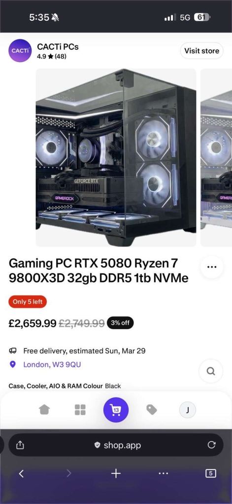 Gaming PC RTX 5080 Ryzen 7 9800X3D 32gb DDR5 1tb NVMe (BRAND NEW SEALED)