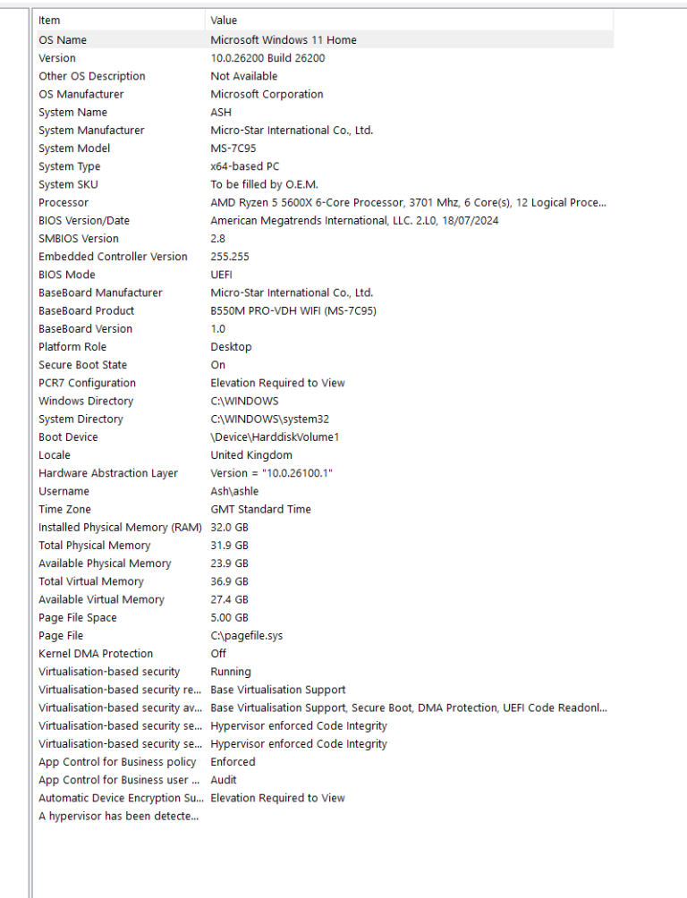 • Motherboard: MSI B550M PRO‑VDH WIFI (Note this was new three months ago so I could add WiFi.)
