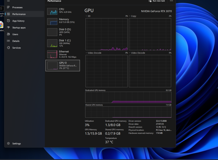 • GPU: MSI GeForce RTX 3070 Ventus 3X OC 8GB GDDR6