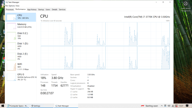 CPU - Intel(R) Core(TM) i7-3770K CPU @ 3.50GHz, 3501 Mhz, 4 Core(s), 8 Logical Processor(s)