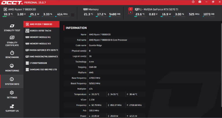 I have paired this excellent CPU with a fantastic Nvidia 50 Series GPU, the RTX 5070Ti.