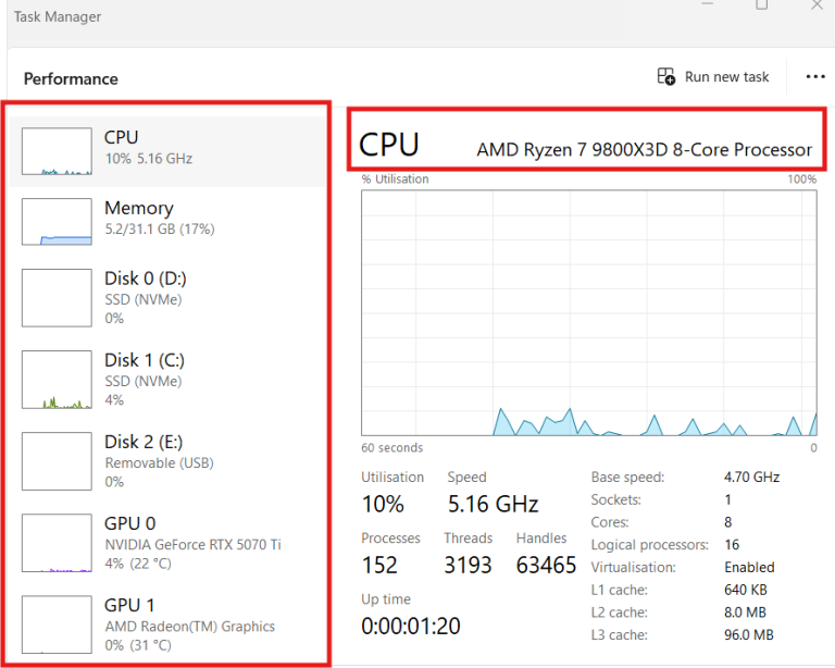 Processor: AMD Ryzen 7 7800X3D - Up to 5.2Ghz (8 Cores, 16 Threads)
