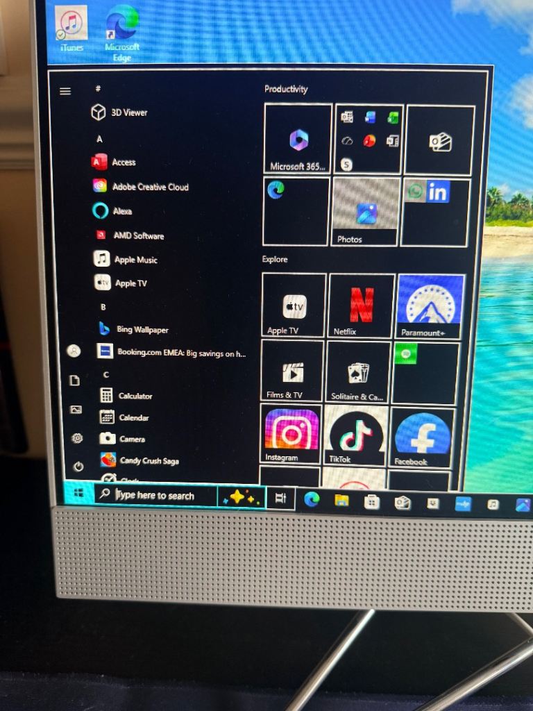 HP 24-dp0002na 23.8” All in One PC AMD Ryzen 5.256 GB SSD in Silver with keyboard and wireless mouse and built in Camera all in Excellent condition, cost £699 new