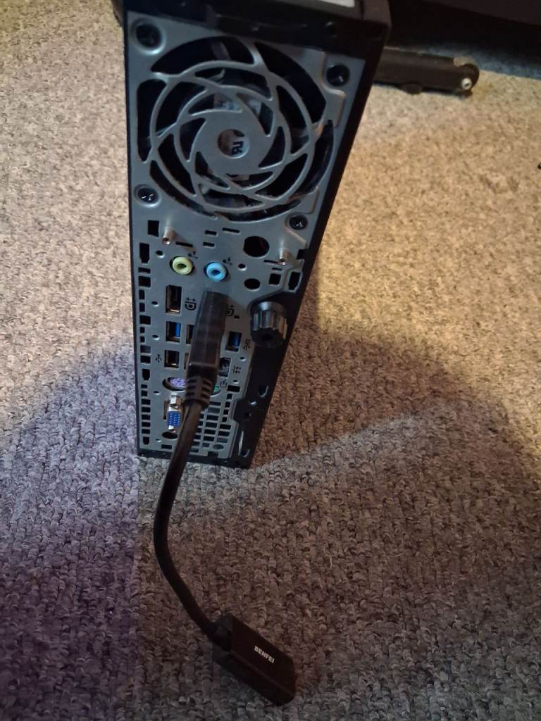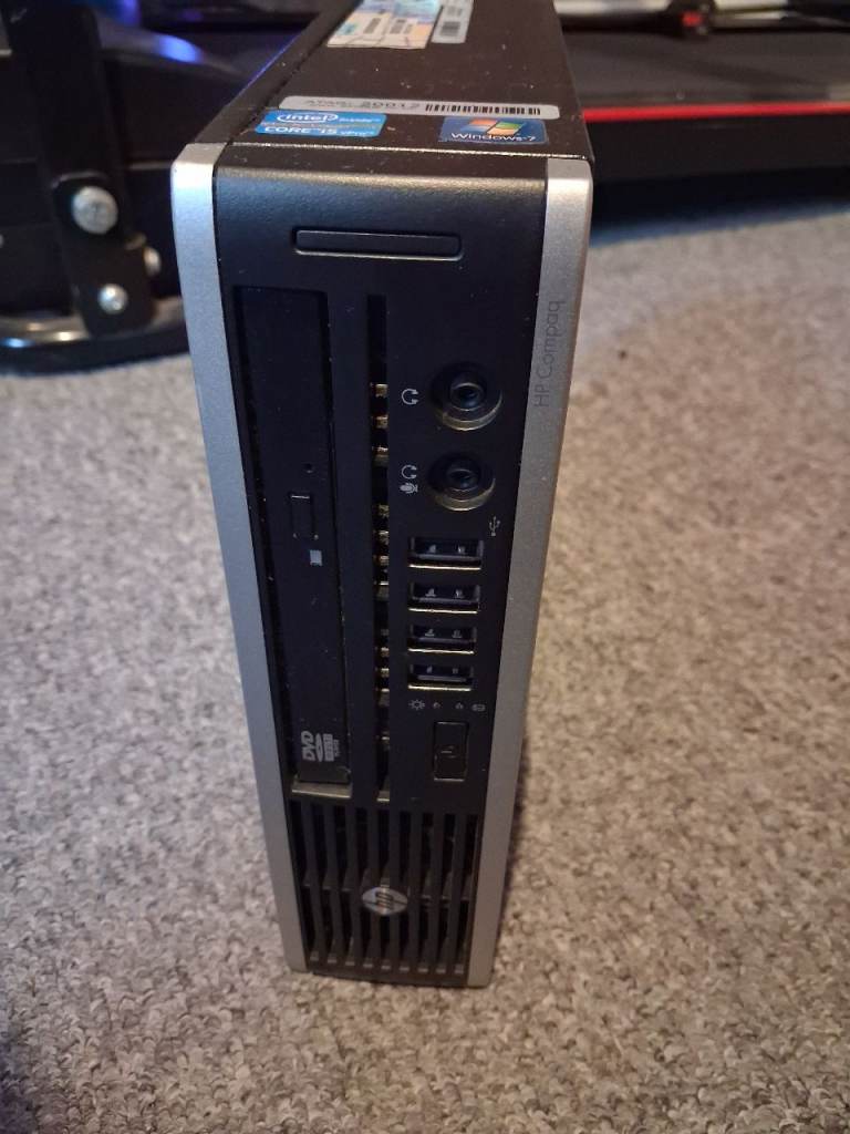 Hp elite ultra slim very small pc, intel i5 processor, 8 gb ram. Ssd hard drive, very quick pc tower , dvd,cd burner, wifi connection, multiple usb ports,windows 10 operating system. Dp ports, hdmi connection. Great small quick PC. No Timwasters!