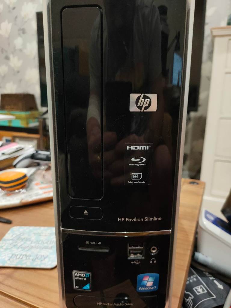 Slimline HP pavilion. In good, used fully working condition. It has windows 10, wifi, 500gb hard drive, HDMI, Blu-ray player etc. it has a basic graphics card installed. It is a good little PC that works well. Only selling as I've upgraded. Ideal for homework, browsing the Internet etc. it's all been reset ready for the new owner. Can come with a keyboard and mouse and other cables if needed at no extra charge. Comes with the power lead it's just not in the pics.