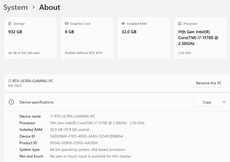 This custom-built high-performance gaming and workstation PC is designed for smooth 1440p and 4K gaming, VR, streaming, and heavy multitasking. Powered by an Intel Core i7-11700 with 8 cores and 16 threads, paired with an MSI RTX 3070 graphics card, this system delivers excellent gaming performance, fast responsiveness, and strong productivity power.