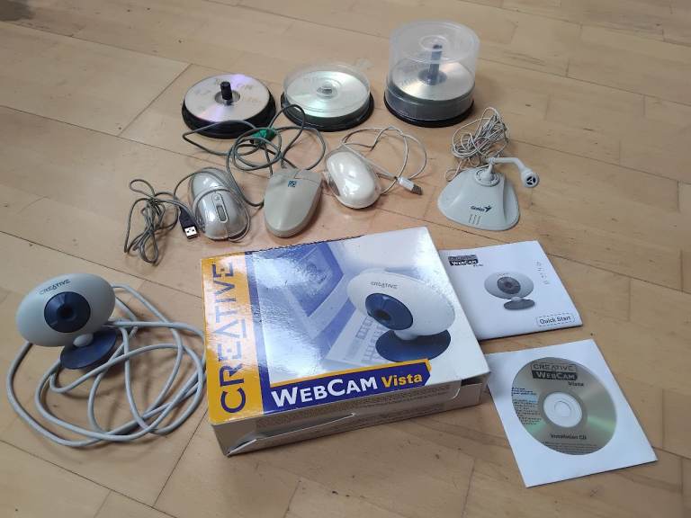 Webcam, Microphone, Disks, Mouse x 3. Job lot.