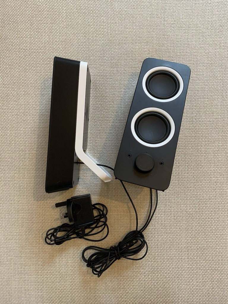 Stereo Sound, 10 Watts Peak Power, 2 x 3.5mm Inputs, Headphone Jack, Adjustable Bass, Volume Controls, UK Plug.