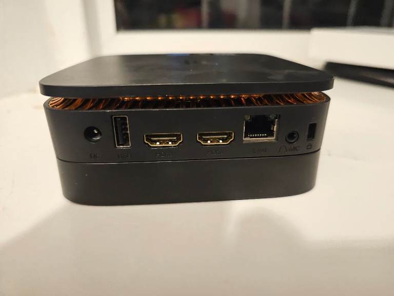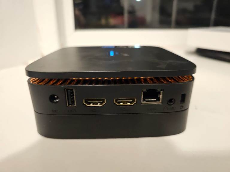 Mini PC looks brand new used for a short period and was able to cope with all my office-related tasks. It has 16 GB and 1 TB hard drive. Its quiet in operation and is easy to plug cables and attachments. Rear has USB A HDMI, LAN and the side has 3 USB slots.