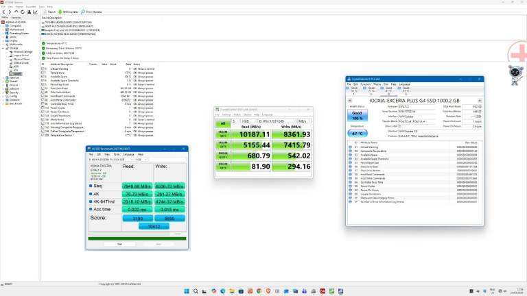 SSd SSD 1TB ultra fast Gen.5 Kioxia Exceria G4 plus with ultra low latency, really working faster, than Crucial t705 due very low access time read 0.022ms write 0.015ms + 512gb SSd Samsung Gen. 4 as well very fast PM9A1 it's version of Samsung 980 Pro for enterprises read up 6900mb/s write 5000mb/s