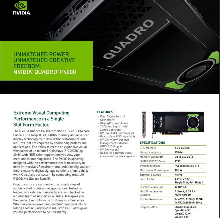 NVIDIA quadro p4000 graphic card 8GB 256 Bit