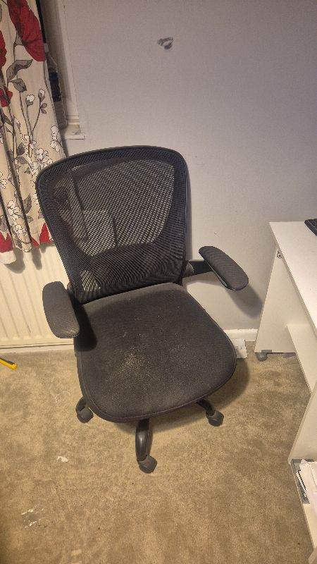 Monitor keyboard PC and desk with office chair