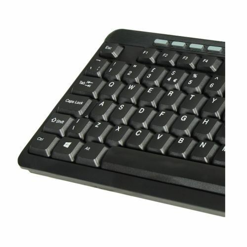 To aid in the reduction of strain of the users fingers and/or wrists. This kit is a very compact size allowing for less work surface clutter. The keyboard with its stylish and ergonomic design has the enhanced multimedia keys to allow you to open documents and reply to e-mails. Control the multimedia programs on your PC all at the touch of a button with the enhanced multimedia keys.