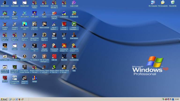 Retro/old school Windows XP gaming PC computer with plenty of games