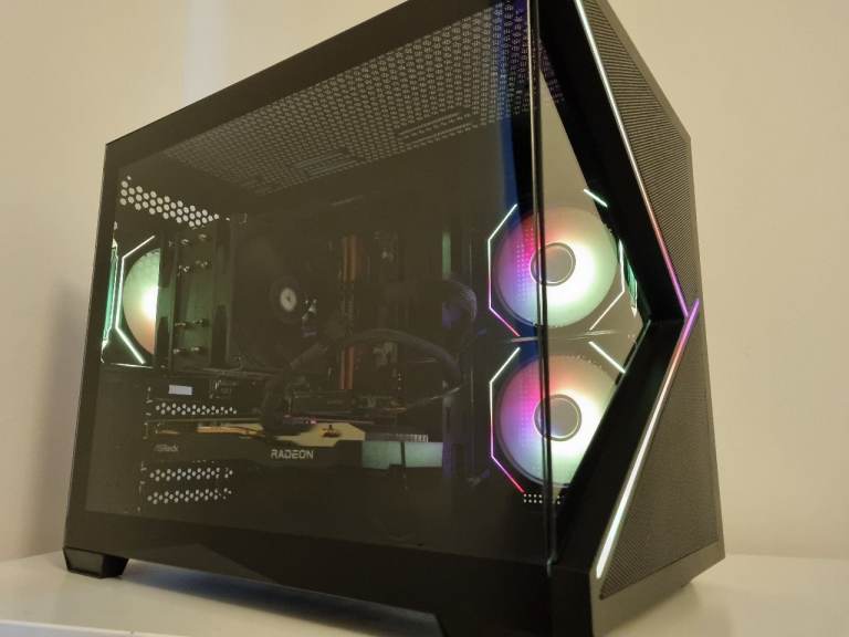 Stunning and powerful custom built gaming PC in a premium aquarium style RGB case. This system is ideal for high FPS 1080p gaming and strong 1440p performance, as well as streaming, content creation and heavy multitasking. The PC is fully tested, freshly installed and ready to use.