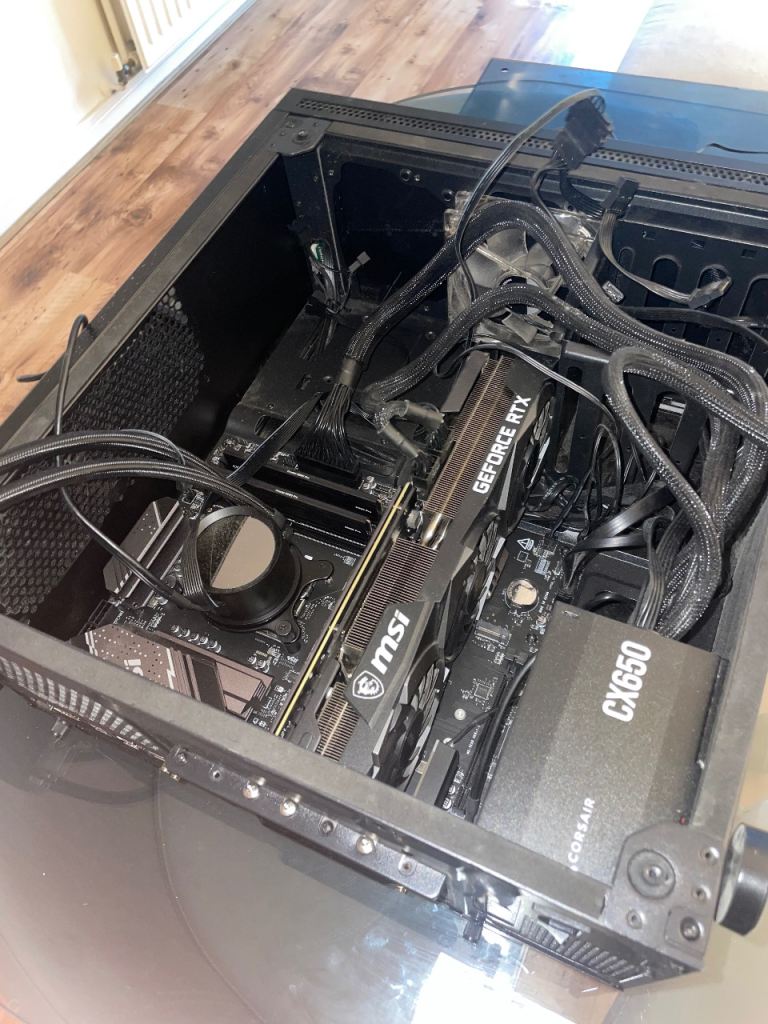 - The case is a Corsair one. Needs replacing as is quite old now. still fully functional bar 1 fault with the power button (sticks sometimes), but clear wear and tear